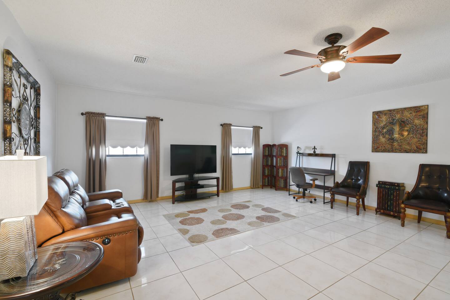 The home is designed as a classic Florida-style family home with spacious, open-concept living areas and a completely closed-in sunroom space. There are three bedrooms with two full bathrooms. We also offer guests anything they may need during their stay in the home! Sleeping Arrangements & Bathrooms ● Primary suite: Features statement wooden furniture pieces, a cozy Queen bed, closet, private outdoor access, and a full ensuite bathroom ● Second bedroom: Features a Full bed, large mirror & dresser, and ample natural lighting! ● Third bedroom: Features a Full bed, closet, and a dresser. ● First bathroom: Full ensuite from the primary suite ● Second bathroom: Full shower, vanity mirror and fully-stocked basic toiletries & towels! Each TV is quipped with the following streaming services: Amazon Prime Video, Disney+, Fire TV, Hulu, Netflix, Peacock Kitchen & Laundry ● Brand-new Samsung full-size in-unit washer & dryer ● Sparkling-clean, white bed linens ● Kitchen: beige & white open-concept kitchen with a Keurig coffee maker, basic cleaning products, toiletries, cooking basics, and utensils ● Guests will be provided with extra pillows, blankets, linens, paper products, and towels. Living ● Entertainment area features a massive 60” SmartTV, leather sofas, and a dedicated workspace. ● Lightning-fast WiFi ● New TVs ● Cozy sofas for lounging & unwinding ● Air mattress / Portable crib (Lotus) ● Covered, spacious Florida-style sunroom with ample seating! Outside ● Large private driveway with ample guest parking ● BBQ grill ● TV on patio ● SmartLock guest self check-in Note: This home is equipped with a device that monitors the environment inside the property (including noise levels, temperature, motion, and cigarette smoke) to ensure guests have a safe and pleasant stay. It does not record video or sound.